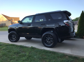 Stock TRD 17" Wheels 33" 255/80 BFG KM2's (E-rated) 3" lift/leveling kit: Toytec spacer + ICON 2" Rear Coil Springs No...
